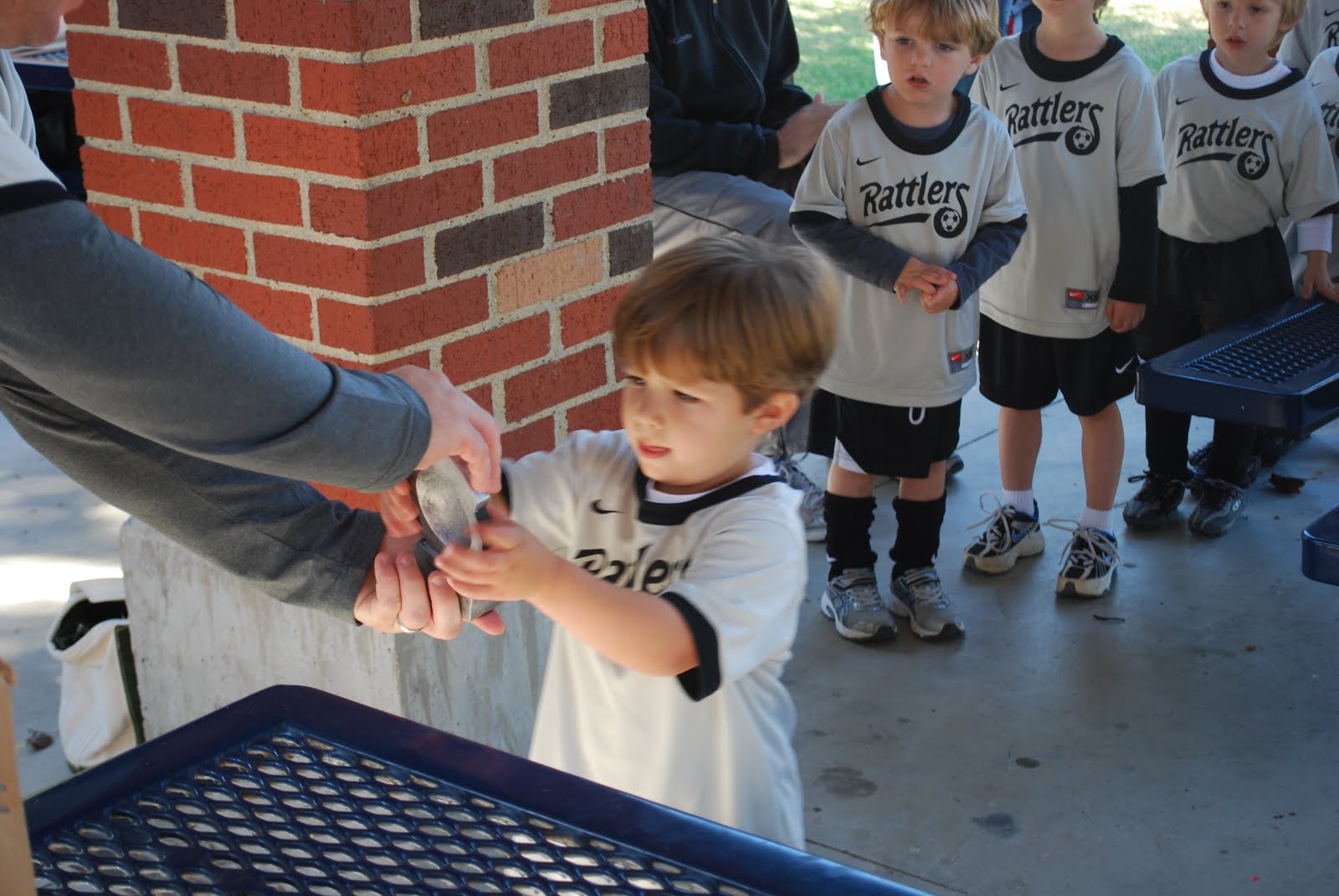 I'm not sure if I've mentioned on my blog before that Rett played in his first "organized" sport this year-SOCCER! He was pretty apprehensive at first but he warmed up to it quickly and even scored three goals during his last game of the season! The end-of-the-season soccer party was a big hit and all of the kids got trophies. Here are a few pics I snapped. Note: Our next sport will be t-ball this spring.